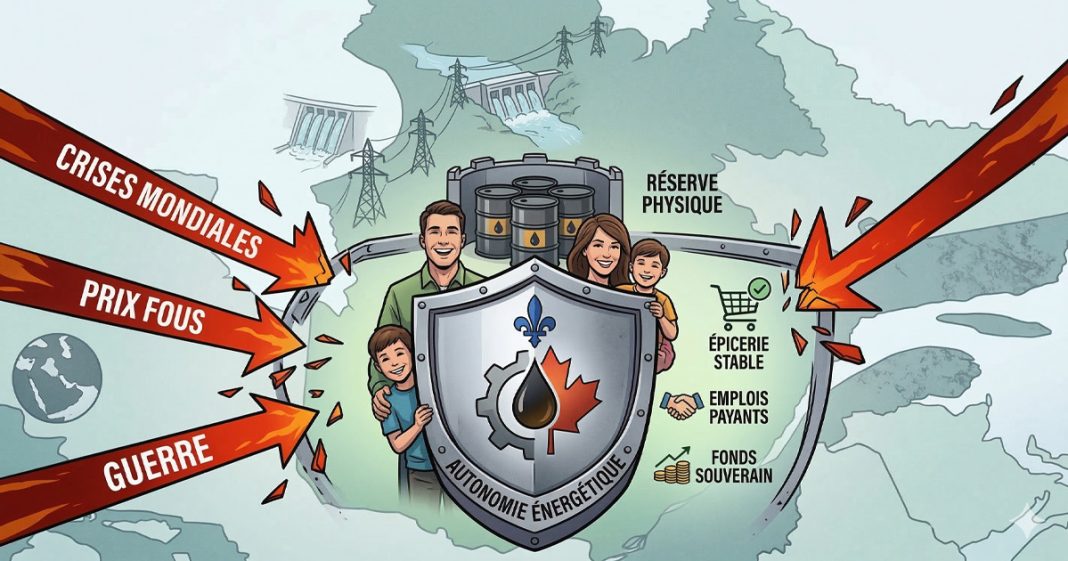 Ce n’est pas une histoire lointaine. C’est ce qui arrive maintenant, en mars 2026, aux familles québécoises. On importe presque tout notre pétrole et notre gaz — on n’en produit quasiment rien ici. Résultat : chaque crise énergétique, qu’elle soit au Moyen-Orient ou ailleurs, nous frappe direct dans le portefeuille. Et ça ne touche pas juste l’essence : ça monte jusqu’à l’épicerie via nos agriculteurs qui absorbent les hausses, et à tous les biens de consommation via les frais de transport de marchandises — les camionneurs et les entreprises de logistique répercutent les coûts du diesel sur tout ce qui arrive dans les magasins, avec des surcharges de 13-14 % sur les livraisons dans bien des cas.