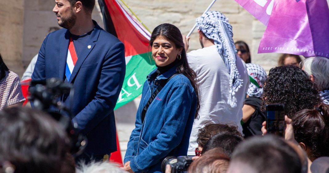 Le soir des élections européennes de juin 2024, Mme Hassan a célébré son élection avec le chef des LFI Jean-Luc Mélenchon et elle avait, autour de ses épaules, le keffieh palestinien. Le chef du parti a trouvé un apôtre de la cause palestinienne. Depuis ce temps, elle a activement contribué aux débats sur la question israélo-palestinienne. La France est déchirée entre les partisans d’Israël et ceux de la Palestine. Elle a défendu le peuple palestinien sur les réseaux sociaux tout en dénigrant la politique israélienne. Elle a témoigné d’un engagement immédiat au profit du Hamas et d’une critique extrêmement violente à l’égard de l’État hébreu. Elle a surfé sur la situation post 7 octobre avec un discours pro-Palestine et anti-israélien très affirmé et très marqué. »